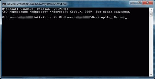 attrib +s +h “C:\Users\<имя пользователя>\Desktop \Top Secret”
